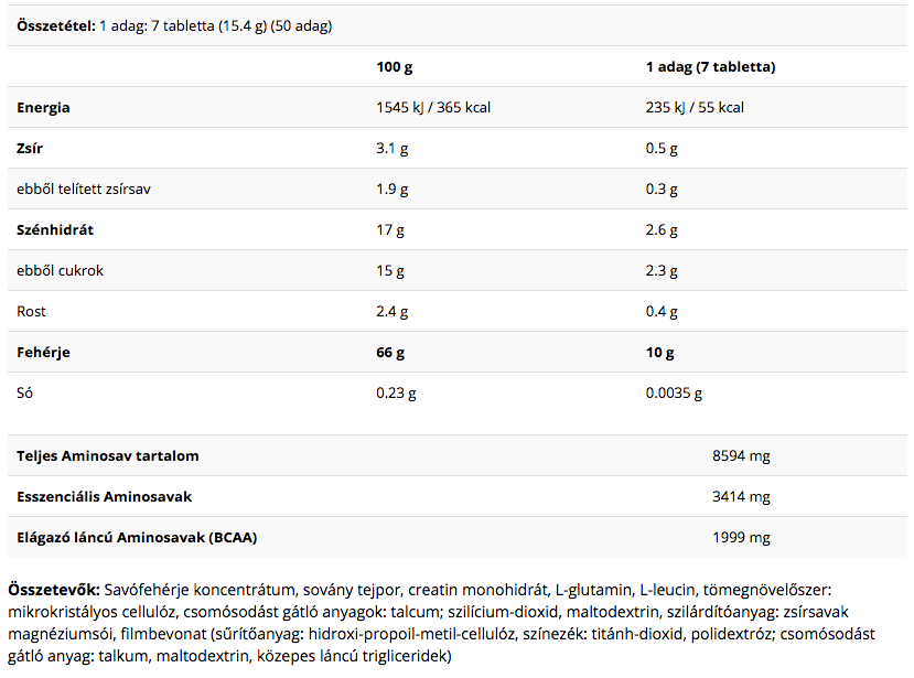 esszenciális és elágazó láncú aminosavat (BCAA) tartalmaz. Az