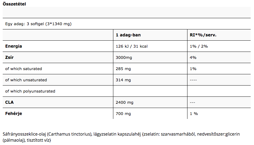tinctorius) és 2400mg konjugált linolsavat (CLA) tartalmaz.
