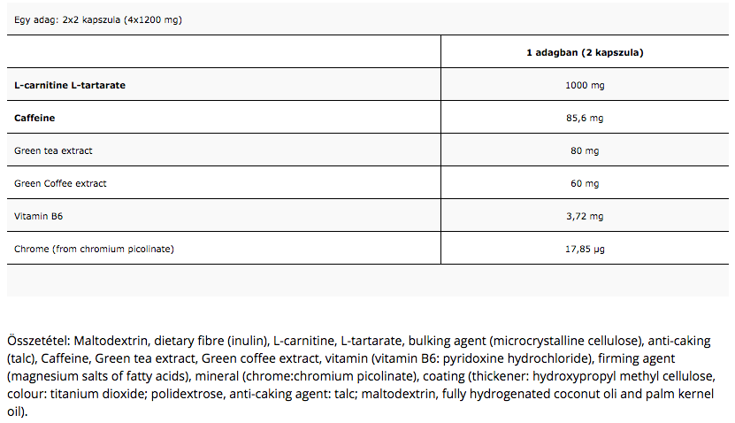 l-karnitin, koffein, zöld tea és zöld kávé kivonat amely segíthet a